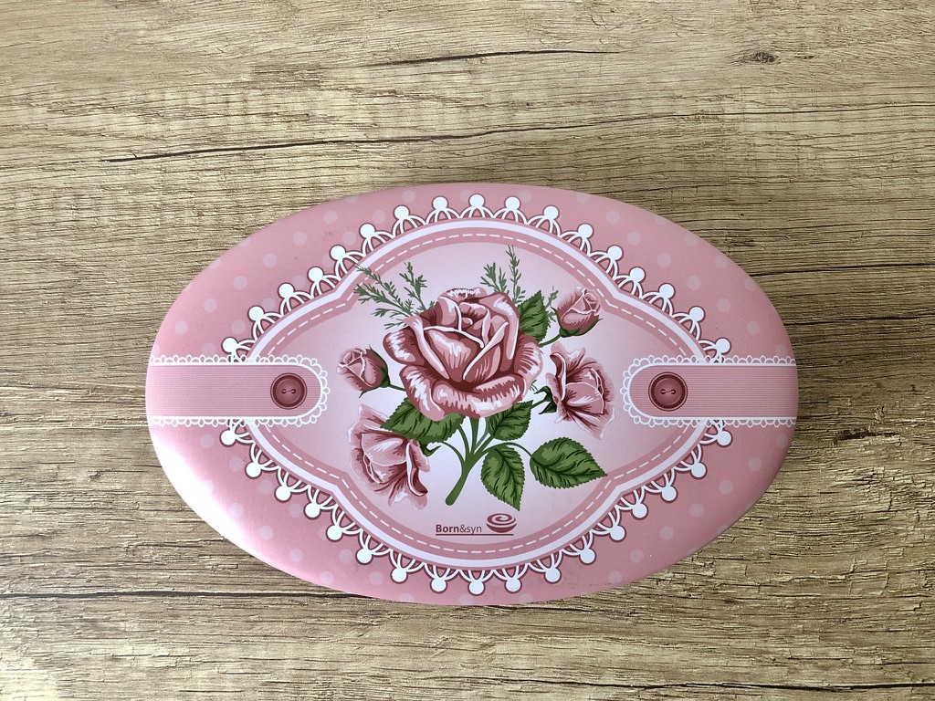 Bonboniéra Born&syn - Růže s krajkou oválná plechová dóza 125g