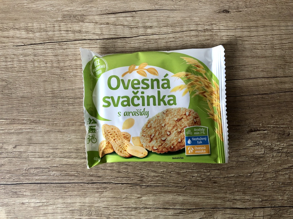 Křehká ovesná sušenka s arašídy, vyrobená BEZ palmového tuku.