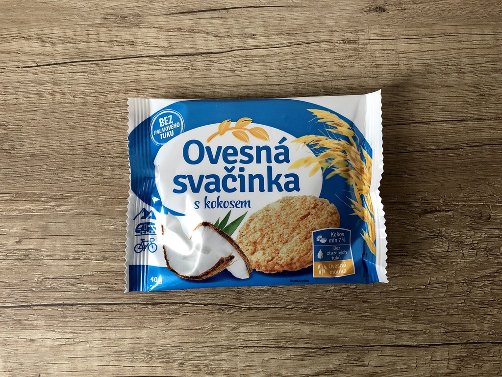 Křehká ovesná sušenka s kokosem, vyrobená BEZ palmového tuku.