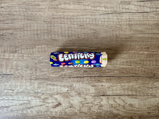 Složení:cukr, sušené odtučněné mléko, kakaová hmota, kakaové máslo, pšeničná mouka, máselný tuk, sušený výrobek mléčné syrovátky, rýžový škrob, emulgátor (lecitiny), barviva (betanin, karoteny, kurkumin), koncentrát spiruliny, leštící látky (karnaubský vosk, včelí vosk bílý), rostlinné koncentráty (světlice barvířská, ředkev), sladový výtažek z ječmene.