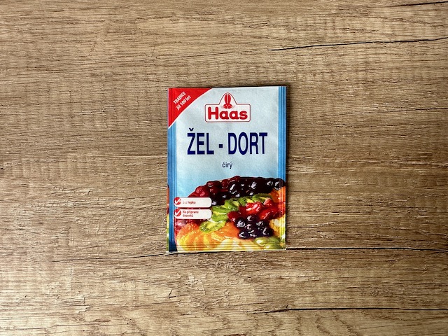 Haas žel-dort čirý - želé na dorty v prášku.