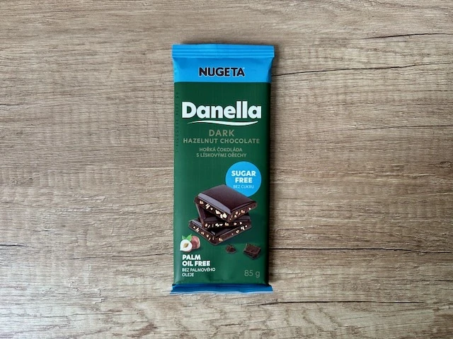 Nugeta Danella Hořká čokoláda s lískovými ořechy bez cukru 85gSkladem49,90 Kč/ ks44,55 Kč bez DPH