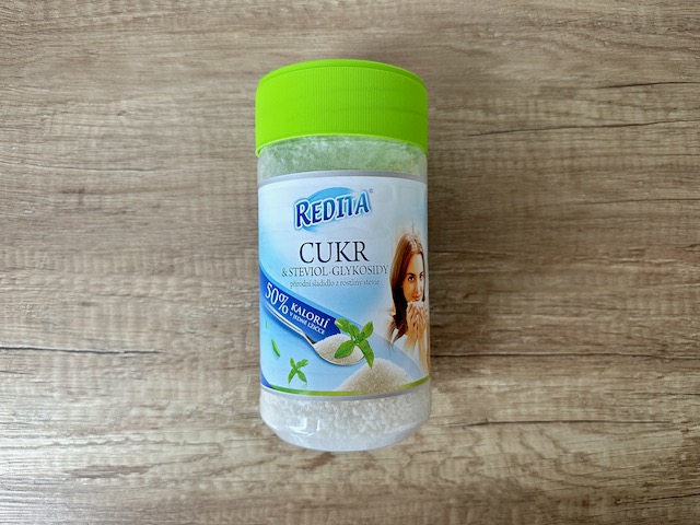 Složení: cukr, steviol-glykosidy (přírodní sladidlo z rostliny stevie).